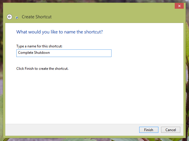 Whenever you click on the desktop your PC will go for the full shutdown. You can change the icon of the shortcut file to make it look attractive and look like shutdown. Also you can pin it to the start menu to make it appear on the start screen.