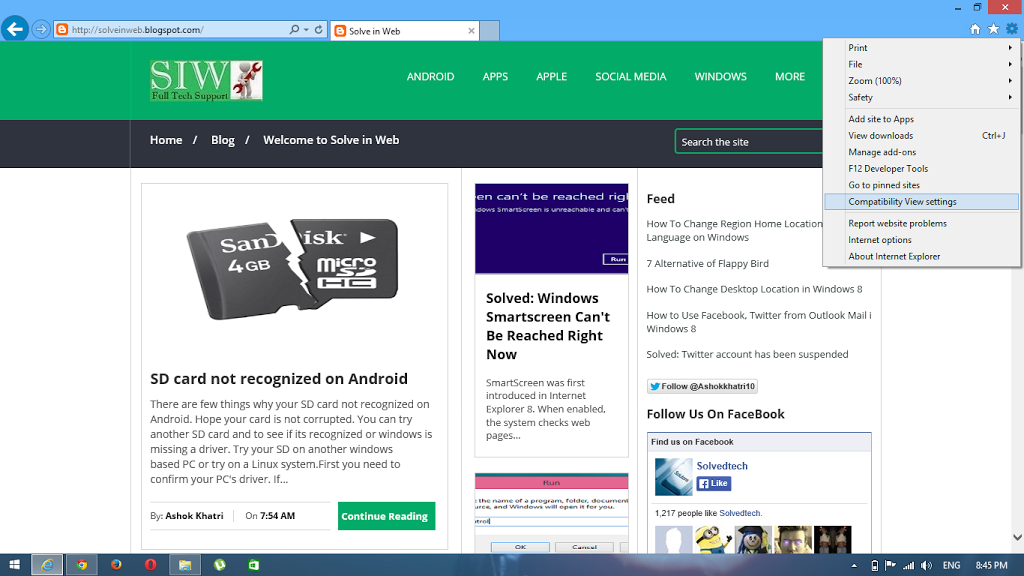 open the Internet Explorer and click the Tools button which lies on top right corner of Internet Explorer 11