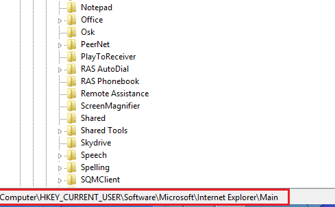 • Go to HKEY_CURRENT_USER\Software\Microsoft\Internet Explorer\Main