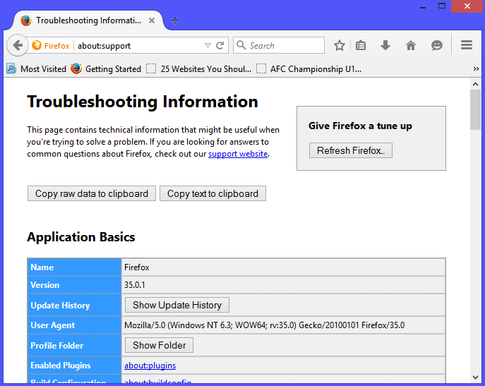 • Open your firefox and type “about:support” in address bar