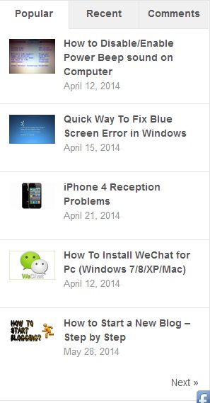 In this widgets you will allow to put tab list of latest, popular, and recent comment with small piece of post thumbnail/gravatar image on your blog’s sidebar. This tab deign in jquery and most popular post is shown in the base of comment.